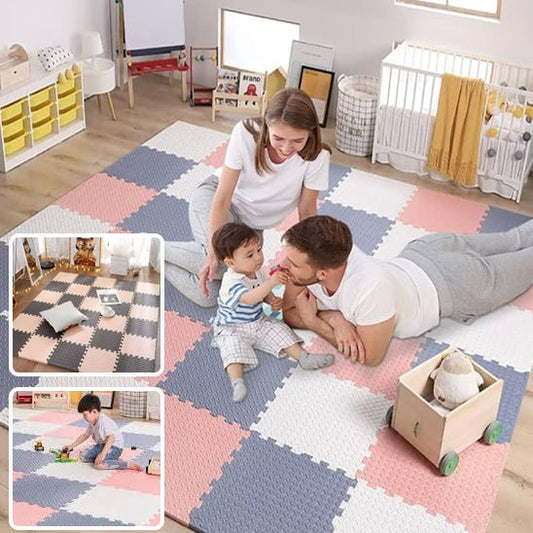 Tapis de jeu bébé - Rose et beige 16 pièces
